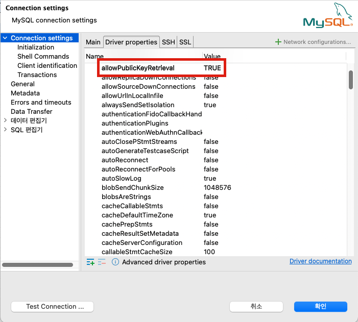 [MySQL] DBeaver 연결 시 Public Key Retrieval is not allowed 문제